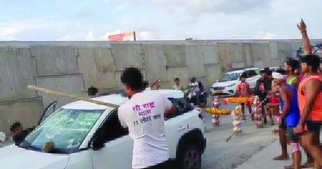 कांवडिय़ों का हुड़दंग : कार पर डंडा मारते