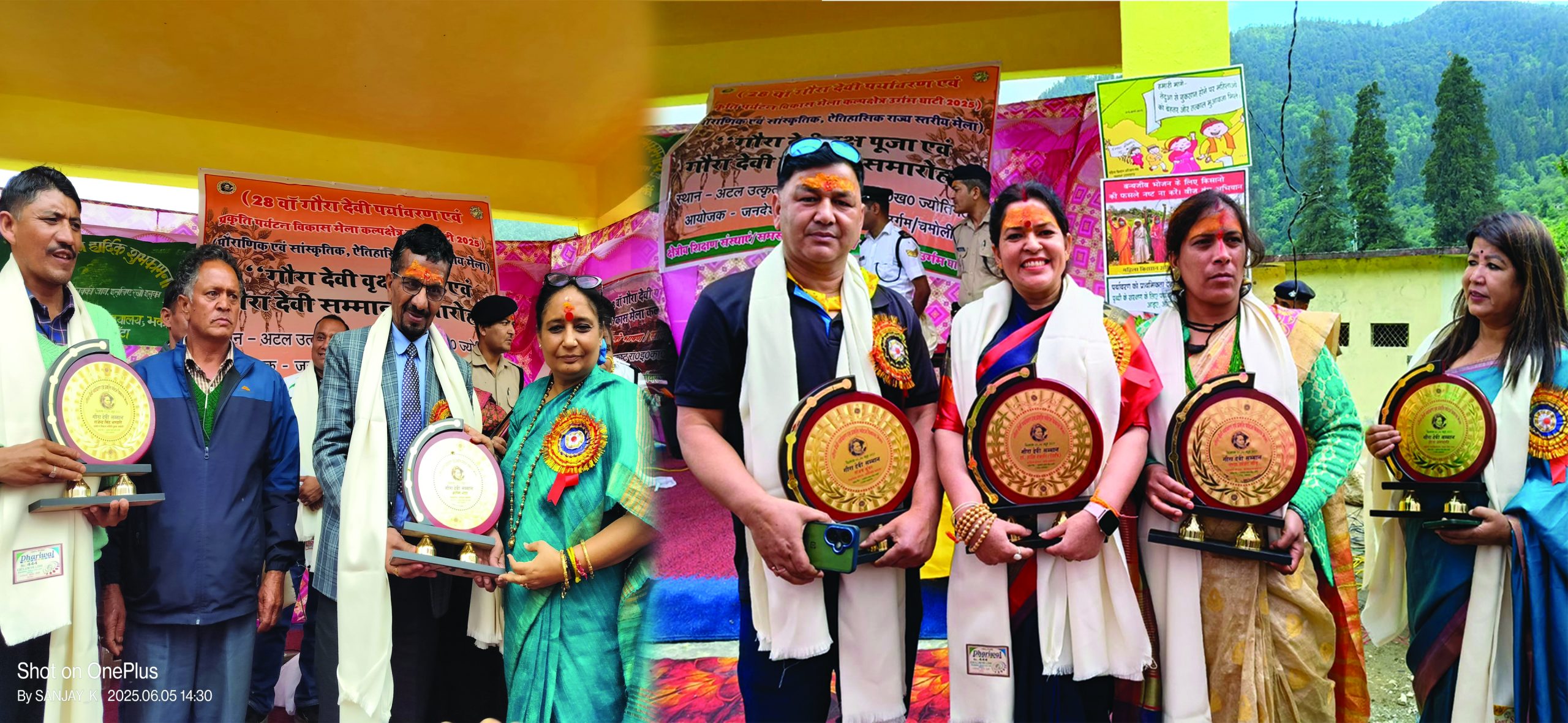 चमोली जिले के उर्गमघाटी में गत् 5 जून को विश्व पर्यावरण दिवस पर भव्य कार्यक्रम का आयोजन किया गया। इसके आयोजक ‘जनदेश समिति’ एवं ‘महिला मंगल दल’, ‘युवक मंगल दल’ एवं ग्रामीण रहे। इस दो दिवसीय पर्यावरण, लोक-संस्कृति एवं पर्यटन मेले में हर वर्ष समाज के विभिन्न क्षेत्रों में उत्कृष्ट कार्य करने वाले लोगों को गौरा देवी पुरस्कार से सम्मानित किया जाता है। इस वर्ष भी विभिन्न क्षेत्रों में उल्लेखनीय कार्यों के लिए 14 लोगों को यह सम्मान दिया गया। पत्रकारिता के लिए हिंदुस्तान समाचार पत्र के चमोली के ब्यूरो चीफ वरिष्ठ पत्रकार क्रांति भट्ट, स्वतंत्र पत्रकार संजय कुंवर के साथ ही शिक्षक और साहित्यकार शशि देवली एवं दिनेशपुर की सामाजिक कायर्कता हीरा जंगपांगी को यह सम्मान दिया गया।