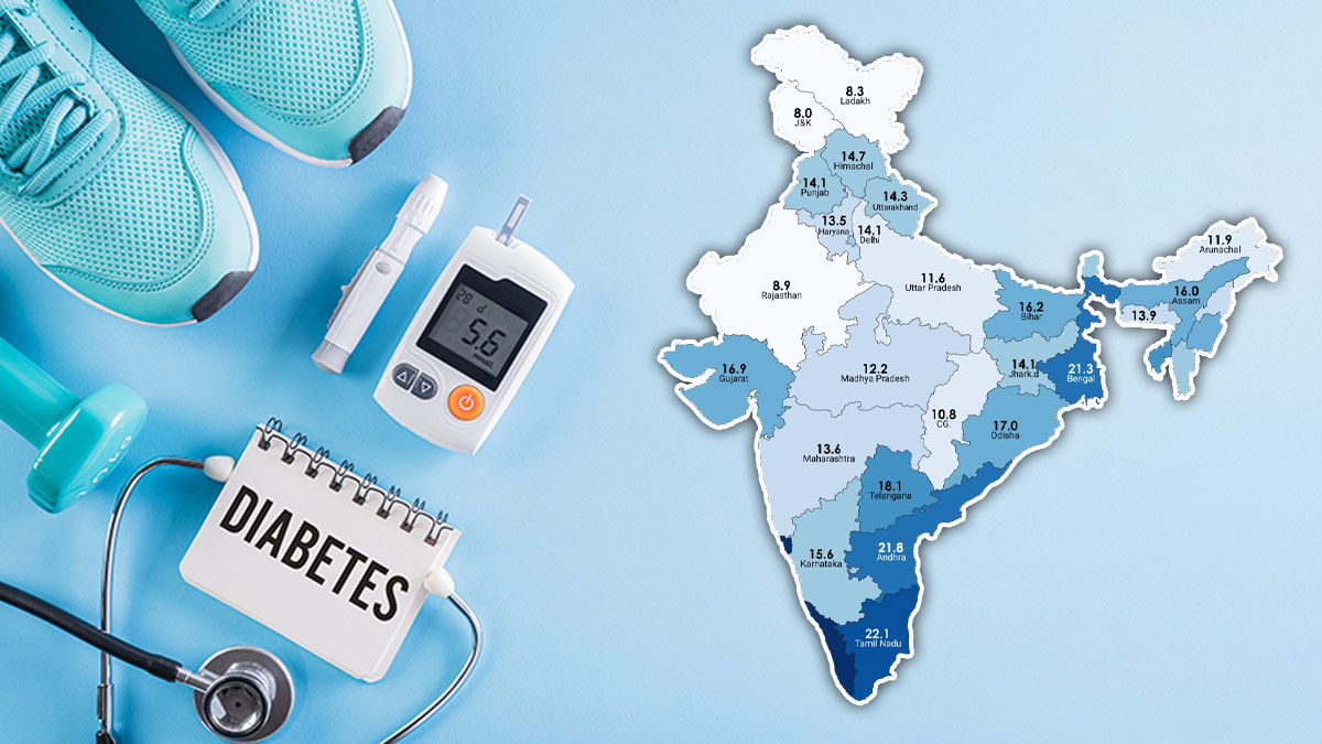 इस स्टडी के मुताबिक, देश में इस वक्त 101 मिलियन (10.1 करोड़) लोग डायबिटीज के मरीज हैं। 2019 में यही आंकड़ा 7 करोड़ था। इस अध्ययन के अनुसार गोवा में लगभग 20.6 प्रतिशत लोग मधुमेह से पीड़ित हैं और अन्य राज्यों की तुलना में इस राज्य में मधुमेह रोगियों की संख्या सबसे अधिक है। गोवा के बाद पुडुचेरी के 26.3 फीसदी, केरल में 25.5 फीसदी लोगों को डायबिटीज है। तमिलनाडु राज्य में 14.4 प्रतिशत लोगों को मधुमेह है। उत्तर प्रदेश में मधुमेह का सबसे कम प्रसार 4.8 प्रतिशत है। वर्तमान में, हालांकि उत्तर प्रदेश जैसे राज्यों में मधुमेह रोगियों की संख्या कम है, भविष्य में उत्तर प्रदेश, मध्य प्रदेश, बिहार जैसे राज्यों में मधुमेह रोगियों की संख्या बढ़ने की संभावना है। इस अध्ययन के माध्यम से यह भविष्यवाणी की गई है।