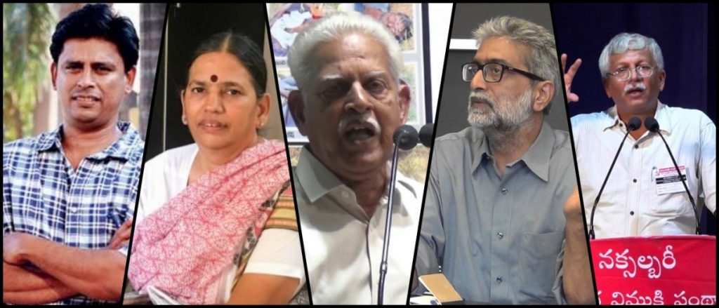 भीमा कोरेगांव हिंसा मामले में 28 अगस्त, 2018 को पुणे पुलिस देश के पांच प्रतिष्ठित मानवाधिकार कार्यकर्ताओं को जिनमें कवि, पत्रकार, वकील, राजनीतिक कार्यकर्ता शामिल थे, गिरफ्तार कर लेती हैं। ये पांच कौन है इस पूरे मामले की तह में जाने से पहले, समझा जाना जरूरी है। इन पांचों का संक्षिप्त परिचय कुछ यूं हैंः