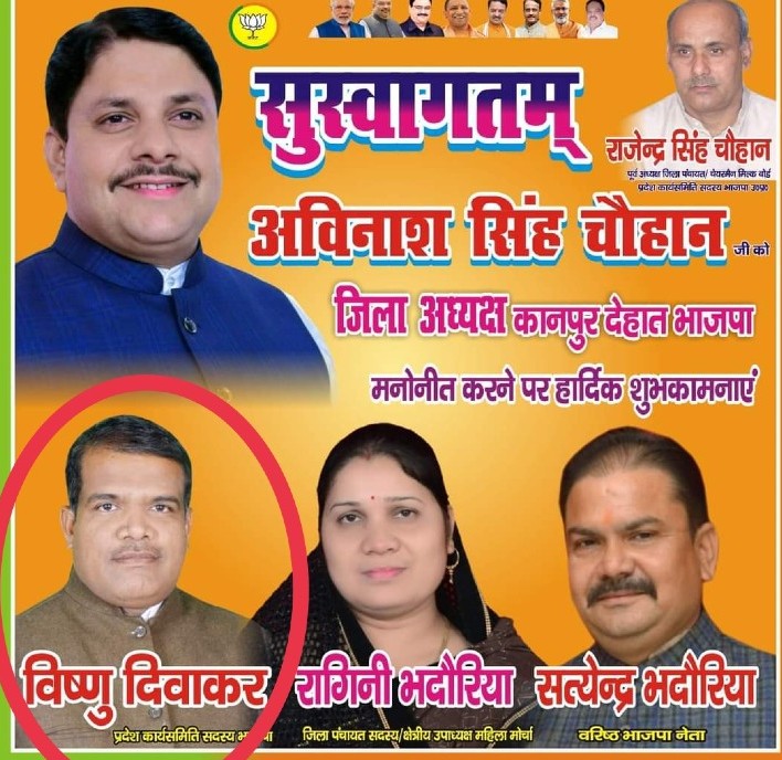 फिलहाल, विष्णु बाबू दिवाकर का पूरा कच्चा चिट्ठा सामने आने के बाद भाजपा उससे पल्ला झाड़ती हुई दिख रही है। कानपुर के क्षेत्रीय अध्यक्ष मानवेंद्र सिंह ने कहा है कि भाजपा में उसका कोई पद नहीं है। लेकिन दूसरी तरफ एक पोस्टर भी सामने आया है । जिसमें अविनाश सिंह चौहान को कानपुर मंडल का भाजपा अध्यक्ष मनोनीत करने पर बधाई दी गई है। इसमें विष्णु बाबू दिवाकर का फोटो लगा हुआ है। जिस पर दिवाकर के नाम के नीचे सदस्य प्रदेश कार्यकारिणी समिति भाजपा लिखा हुआ है।