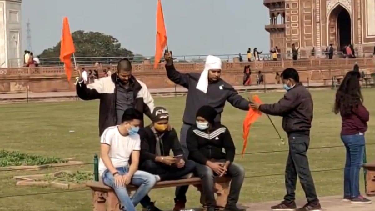 जानकारी के अनुसार 4 जनवरी को चार युवक गौरव ठाकुर, सोनू बघेल, ऋषि लवानिया और विष्णु कुमार ताजमहल के अंदर पहुंचे। उन्होंने भगवा झंडा लहराया और शिव चालीसा का पाठ भी किया।  यही नहीं बल्कि उन्होंने इसका वीडियो भी बनाया। गौरतलब है कि अक्टूबर में विजयादशमी के दिन भी गौरव ठाकुर ने ताजमहल परिसर में भगवा झंडा लहराया और शिव चालीसा का पाठ किया था। तब वहा मौजूद सीआईएसएफ के जवानों ने गौरव को पकड़ लिया था। पूछताछ के बाद उसे छोड़ दिया गया था। उस दौरान गौरव ने कहा था कि यह शिव मंदिर तेजोमहालय है, इसलिए उसने शिव चालीसा का पाठ कर भगवा ध्वज फहराया।