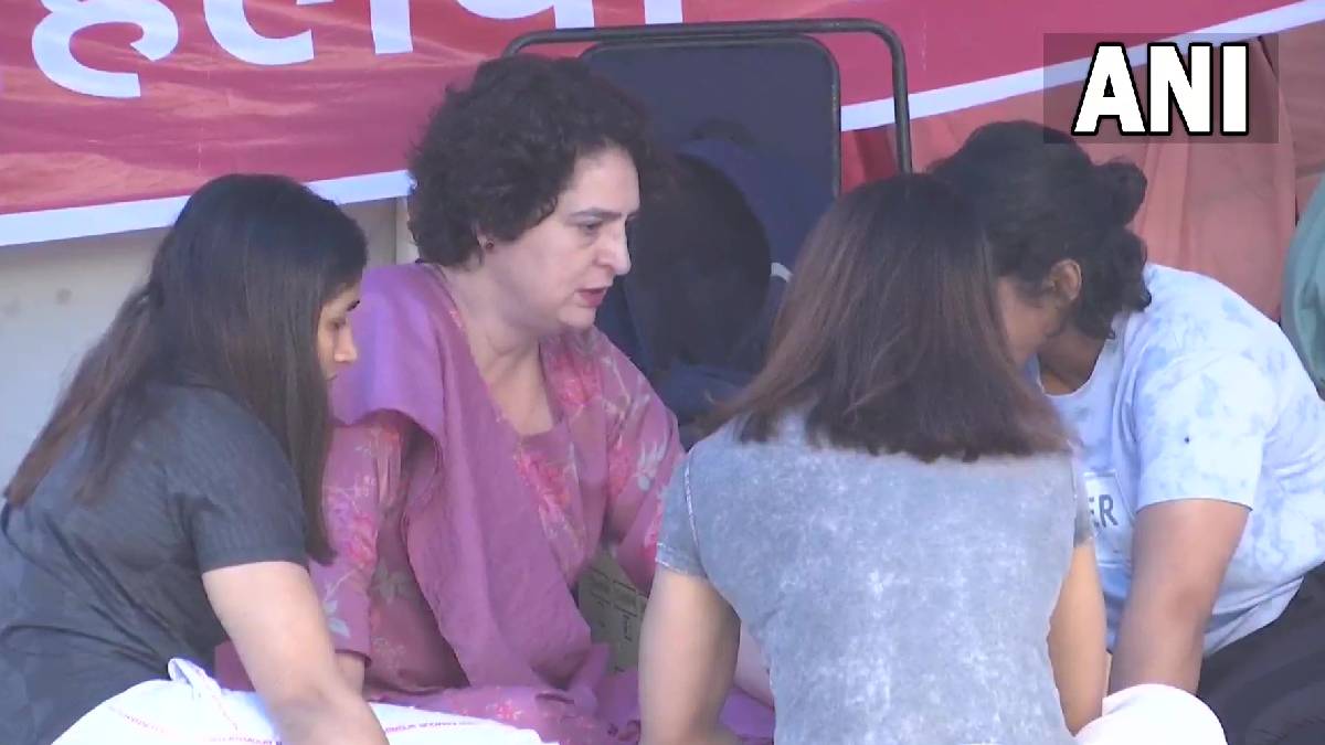 #WATCH दिल्ली: कांग्रेस महासचिव प्रियंका गांधी वाड्रा ने जंतर-मंतर पर कथित यौन उत्पीड़न मामले में WFI प्रमुख बृजभूषण शरण सिंह के खिलाफ प्रदर्शन कर रहे पहलवानों से मुलाकात की। pic.twitter.com/1xh7YVLPr0