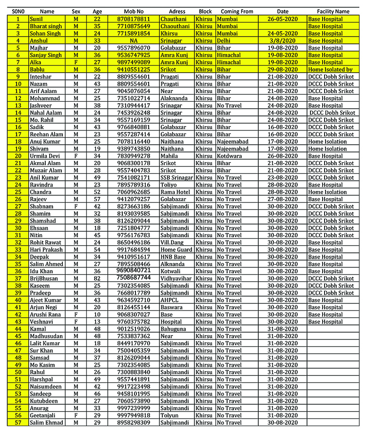 श्रीनगर और आस-पास के इलाकों से सामने आए कोरोना मरीज