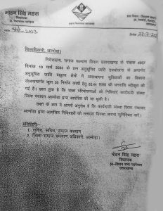 निविदाओं को निरस्त करने संबंधित विधायक मोहन सिंह मेहरा का पत्र