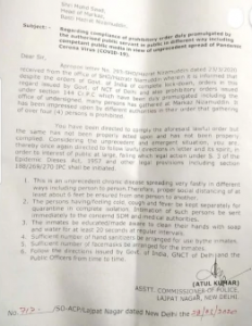 इस चिट्ठी का जवाब 28 मार्च को लाजपत नगर के एसीपी ने मरकज के प्रमुख मोहम्मद साद को दी। जो इस प्रकार है-