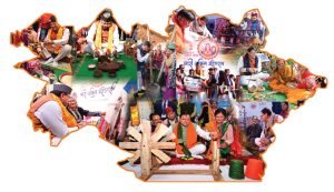 217.28 करोड़ की योजनाओं का लोकापर्ण एवं शिलान्यास। मुख्यमंत्री धामी ने धारचूला की दारमा, व्यास घाटियों के वाइब्रेंट विलेज से आई महिलाओं के साथ बागेश्वरी चरखे, तकली से ऊन कताई और रांच में पारंपरिक विधि से कालीन निर्माण का अनुभव लिया। साथ ही फिरका और बिंडा (मटका) के माध्यम से मट्ठा भी बनाया और सिलबट्टे में पहाड़ का पारंपरिक हरा नून (नमक) भी पीसा।