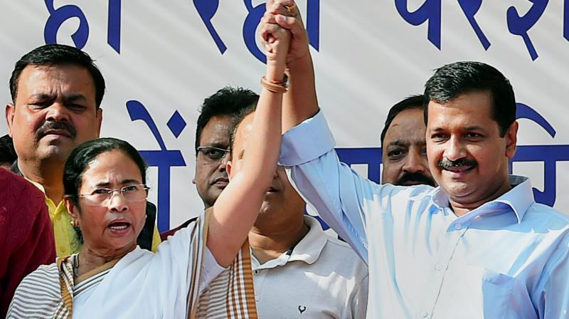 दिल्ली के सीएम केजरीवाल ने एक्टिविस्ट रहते हरेक राजनेता को जमकर कोसा था। उनकी नजर में सभी राजनीतिज्ञ महाभ्रष्ट थे। राजनीतिक दल के गठन बाद भी केजरीवाल राजनेताओं पर वार करने से बाज नहीं आए। उन्होंने कांग्रेस, सपा-बसपा, भाजपा समेत किसी को नहीं छोड़ा। यही कारण है कि प्रधानमंत्री मोदी और दिल्ली के उपराज्यपाल के खिलाफ धरने और अनशन पर बैठने वाले आप नेताओं को विपक्षी दलों से शुरुआत में खास समर्थन मिलता नहीं दिखा। कांग्रेस ने तो इसे केजरीवाल का ड्रामा करार दे दिया। दिल्ली के उपराज्यपाल से केजरीवाल की लगातार अपील भी बेअसर रही। मनीष सिसोदिया और सतेंद्र जैन के आमरण-अनशन का भी कोई खास असर होता नजर नहीं आया। फिर यकायक ही पस्त पड़ती ‘आप’ के भीतर जान फूंकने का काम पश्चिम बंगाल की सीएम ममता बनर्जी ने कर दिखाया। चार गैर भाजपाई मुख्यमंत्रियों के केजरीवाल के समर्थन में कूद पड़ने के पीछे ममता का ही हाथ बताया जा रहा है। इसके बाद राज्यसभा सांसद संजय सिंह के नेतृत्व में प्रधानमंत्री के निवास तक का जबर्दस्त प्रदर्शन आयोजित हुआ। हालांकि विपक्षी दलों के बड़े नेता इस प्रदर्शन में शामिल नहीं हुए लेकिन माकपा महासचिव सीताराम येचुरी की उपस्थिति को कांग्रेस पर आम आदमी पार्टी को महागठबंधन का हिस्सा बनाने के लिए दबाव की राजनीति का हिस्सा माना जा रहा है। आप सूत्रों की मानें तो केजरीवाल एलजी हाउस में चल रहे अपने धरने को व्यापक जनसमर्थन न मिलते देख मायूस होने लगे थे। ममता बनर्जी ने उनकी इस मायूसी को दूर करने का काम किया। सूत्रों की मानें तो २०१९ में कांग्रेस से अलग एक गठबंधन बनाने की दिशा में यह ममता की दूरगामी रणनीति का हिस्सा है जिसमें उन्होंने कर्नाटक, आंध्र प्रदेश और केरल के मुख्यमंत्रियों को शामिल कर कांगे्रस को सकते में डालने का काम किया है।