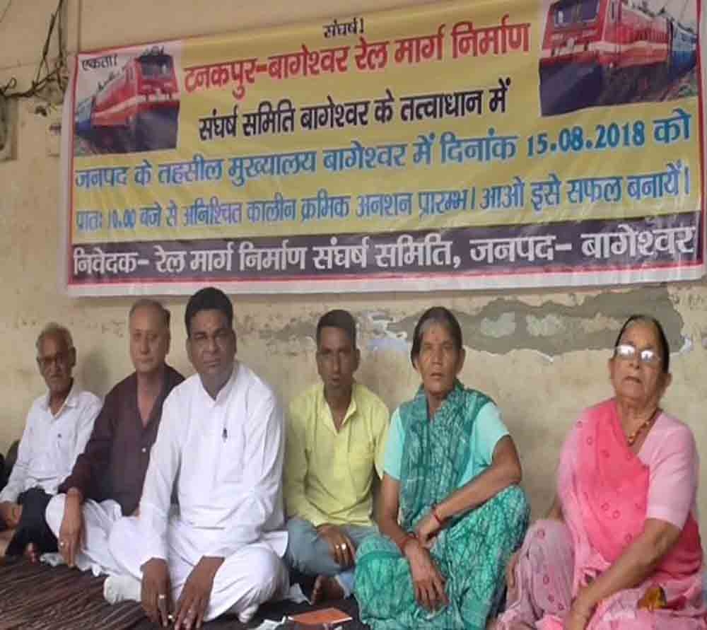 सात दशक से टनकपुर-बागेश्वर रेल लाइन की मांग कर रही क्षेत्रीय जनता इन दिनों फिर जिला मुख्यालय के समक्ष क्रमिक अनशन पर है। जनता का आक्रोश अब उसे दिल्ली में आंदोलन के लिए विवश कर रहा है