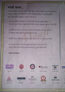 अखबार में दिए गए माफीनामे लिखा है कि डॉ तृप्ति कटारिया, डॉ जाकिया सैयद, समस्त डॉक्टर्स, नर्सेज, मेडिकल टीम, शासन-प्रशासन के समस्त अधिकारी, सभी पुलिसकर्मी, आशा-आंगनबाड़ी कार्यकर्ता, संस्थाएं और समस्त लोग जो इस आपदा से बचाव में लगे हुए हैं। हमारे पास अल्फाज नहीं जिससे हम आपसे माफी मांग सकें, यकीन कीजिए हम सभी शर्मसार हैं हर उस अप्रिय घटना के लिए जो जाने-अनजाने अफवाहों में आकर हुई। हम इकरार करते हैं कि उस रब के बाद आप लोग हीं हैं जो हमेशा से हमारी हर बीमारी में, हर मुश्किल समय में हमारे लिए दीवार बनकर खड़े रहें। इसलिए आज हम दिल से आप सभी से माफी मांगना चाहते हैं, हमें माफ कर दीजिए। हम उस वक्त में पीछे जाकर उसे सुधार तो नहीं कर सकते पर वादा कर सकते हैं कि भविष्य में समाज की हर कमी को खत्म करने की हर संभव कोशिश करेंगे।