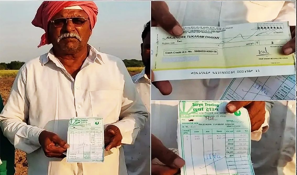 महारष्ट्र के सोलापुर में रहने वाले किसान राजेंद्र तुकाराम चव्हाण अपने 2 एकड़ खेत में प्याज की खेती की थी। प्याज कहीं सड़ न जाये इसके दर से वह अपनी प्याज जल्दी बेचना चाहता था। इसलिए वह 70 किलोमीटर का सफर करके 17 फरवरी, 2023 को सोलापुर के सूर्या ट्रेडर्स मे दस बोरी प्याज लेकर गया। जिसमें कुल मिलकर 512 किलो प्याज थी। लेकिन प्याज के दाम में गिरावट आने के कारण राजेंद्र को अपनी प्याज एक रूपये प्रति किलो के आधार पर बेचनी पड़ी। जिसके आधार पर उसे साड़ी प्याज बेचने के 512 रुपये मिलने चाहिए थे। लेकिन माल चढ़ाने-उतारने, परिवहन, मजदूरी और अन्य शुल्क काटने के बाद, उसे सिर्फ उससे 2.49 रुपये ही प्राप्त हुए। कृषि उपज मंडी समिति के व्यापारी सूर्या ट्रेडर्स ने राजेंद्र चव्हाण को दो रुपये का चेक भी दे दिया। इस सन्दर्भ से देश में किसान की दयनीय स्थिति का पता लगाया जा सकता है। राजेंद्र का कहना है कि व्यापारी ने मुझे 1 रुपये प्रति किलो की दर से प्याज खरीदने का प्रस्ताव दिया। जिसके आधार पर उन्हें उनकी फसल के 512 रुपये प्राप्त होने चाहिए थे। लेकिन ऐसा नहीं हुआ और सूर्या ट्रेडर्स ने इसमें से 509.51 रुपये शुल्क कटौती के बाद मुझे सिर्फ 2.49 रुपए ही दिए । जो उसके साथ-साथ अन्य प्याज उत्पादकों और किसानों का अपमान है। किसान राजेंद्र कहते हैं कि प्याज के किसानों को फसल का अच्छा दाम मिलना चाहिए और प्रभावित किसानों को मुआवजा मिलना चाहिए।