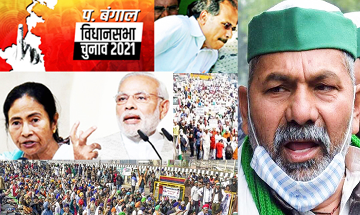 देश में जब से नए कृषि कानून पारित हुए हैं तब से लगातार इन कानून के खिलाफ और समर्थन में विरोध-प्रदर्शन जारी है ।इस समय देश में कृषि कानूनों के खिलाफ किसानों का आंदोलन और तेज हो गया है। अगले दो – तीन महीनों में पश्चिम बंगाल ,असम , केरल ,तमिलनाडु और पुड्डुचेरी सहित पांच राज्यों में विधानसभा चुनाव होने हैं,ऐसे में अब पश्चिम बंगाल के चुनावी दंगल में राजनीतिक पार्टियों के साथ ही किसान संगठन भी कूदने को तैयार हैं। केंद्र के लाए तीन नए कृषि कानूनों के खिलाफ आंदोलन कर रहे किसानों का अगला लक्ष्य बंगाल चुनाव है। किसान नेताओं ने ऐलान किया है कि वे चुनावी राज्य पश्चिम बंगाल में भी महापंचायतें करेंगे। किसान नेता राकेश टिकैत ने कहा है कि हम पूरे देश का दौरा करेंगे और पश्चिम बंगाल भी जाएंगे। वहीं एक किसान नेता ने संकेत दिया कि वे जनता से ऐसे लोगों को वोट नहीं देने को कहेंगे जो किसानों की आजीविका छीन रहे हैं। किसान नेताओं ने यह भी कहा कि अगर पश्चिम बंगाल में बीजेपी के लोग हार जाते हैं तभी उनका आंदोलन सफल होगा।