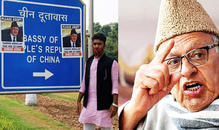 इस बबाल के बीच दिल्ली स्थित चीन के दूतावास पर आज 13 अक्टूबर को कुछ पोस्टर लगाए गए हैं। पोस्टर पर फारूख अब्दुल्ला का फोटो है। इस फोटो के साथ लिखा है, ”प्लीज़ अडॉप्ट, टेक हिम टू चाइना.” यानी चीन से मांग की गई है कि फारूख अब्दुल्ला को आप अपने यहां बुला लीजिए, उन्हें गोद ले लीजिए।