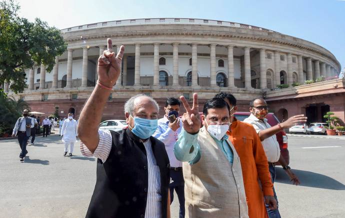 केंद्र सरकार द्वारा लाए गए तीन अध्यादेशों को लोकसभा और राज्यसभा से पारित कर दिया गया है। अब यह बिल राष्ट्रपति के पास जाएंगे, राष्ट्रपति के हस्ताक्षर के बाद बिल कानून का रूप ले लेंगे। लेकिन लोकसभा और राज्यसभा में इन बिल पर काफी बहस हुई, राज्यसभा में सभापति ने कुछ सांसदों को निलंबित तक कर दिया। पंजाब हरियाणा और यूपी के कुछ हिस्सों में जोरदार प्रदर्शन के बाद केंद्र सरकार ने पहली बार समय से पहले सितंबर माह में ही रबी की 6 फसलों का एमएसपी 6% तक बढ़ा दिया है। यह घोषणा कृषि मंत्री नरेंद्र सिंह तोमर ने लोकसभा के कार्यवाही के दौरान की। कैबिनेट की आर्थिक मामलों के कमेटी ने यह फैसला लिया है।