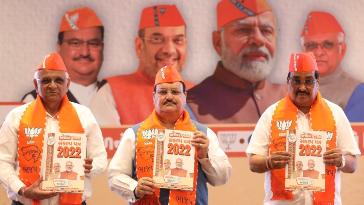 गुजरात विधानसभा चुनाव के पहले चरण में 89 सीटों पर 1 दिसंबर, तो दूसरे चरण में 93 सीटों पर 5 दिसंबर को मतदान होगा और नतीजे 8 दिसंबर को आएंगे। इस बीच भाजपा ने वर्चस्व बनाए रखने के लिए 5 सालों में 20 लाख रोजगार देने का वादा किया है तो कांग्रेस ने अपने घोषणा पत्र में 10 लाख रोजगार ,कृषि इंफ्रास्ट्रक्चर के लिए 10 हजार करोड़ रुपये और सिंचाई का विस्तार करने के लिए 25 हजार करोड़ रुपये का निवेश करने का वादा किया है। भाजपा का कहना है कि अगर वे दोबारा सरकार बनाते हैं तो वे 500 करोड़ केअतिरिक्त बजट से गौशालाओं को मजबूत करेंगे,1000 अतिरिक्त मोबाइल पशु चिकित्सा इकाइयां स्थापित की जाएगी। भाजपा अध्यक्ष जेपी नड्डा, सीएम भूपेंद्र पटेल, प्रदेश अध्यक्ष सीआर पाटिल की मौजूदगी में घोषणा पत्र जारी किया गया है। जबकि कांग्रेस अपना घोषणा पत्र पहले ही जारी कर चुकी है।