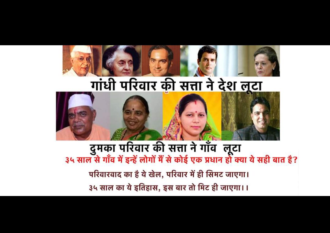 प्रदेश में त्रिस्तरीय पंचायत चुनाव का दंगल जारी है। सोशल मीडिया पर लालकुआं से भाजपा विधायक के खिलाफ जंग छिड़ चुकी है। जिसमे विधायक पर परिवारवाद को लेकर सवाल उठाएं जा रहे है। वायरल हो रही फोटो के मुताबिक गाँधी परिवार से दुम्का परिवार की तुलना तो की गई पर वह तुलना विकास से नहीं सिर्फ लूटने के नाम से है, फेसबुक में बमेटा बंगर खीमा नाम के पेज पर विधायक जी को आइना दिखाया गया है, पर ये पता नही हकीकत क्या है। आपसी गुटबाजी के मामले में लालकुआं विधायक अपने ही विधानसभा क्षेत्र में अब्बल रहे। भाजपा कार्यकर्ताओं को आपस मे लड़वाकर अब अपनी बहू को ग्राम प्रधान का चुनाव लड़वाने की जुगत में लगे हुए है। विधायक महोदय अपनी विधानसभा में अपने ही पार्टी के वरिष्ठ कार्यकर्ताओं को आपस में भिड़ाकर गुटबाजी करवा बैठे है, जब सभी कार्यकर्ता आपस मे भिड़ने लगे तो विधायक जी खिसक कर अपने बहू को चुनाव लड़ाने चल दिये। लालकुआं विधायक की कूटनीति उजागर हुई तो क्षेत्र में फजीहत करवा बैठे। इन दिनों क्षेत्र के साथ साथ सोशल मीडिया पर विधायक जी जमकर मनोरंजन के साधन बनते नज़र आ रहे है।