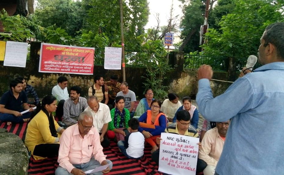 उत्तराखंड में राष्ट्रीय नागरिक रजिस्टर (एनआरसी) लागू करने की सरकार की मंशा को लेकर क्रांतिकारी लोक अधिकार संगठन के बैनर तले विरोध जताया जा रहा है, लोगो ने विरोध जताते हुए कहा की देश भर में नागरिकों को अधिकार विहीनता की स्थिति में धकेल दिया गया है। नागरिकों के पास रोजी रोजगार की समस्याओं के साथ ही भारी असमानता एवं दमनकारी स्थितियां बनी हुई है। उनके मुताबिक सरकारे विदेशी पूंजीपतियों, शोषकों, लुटेरों को आमंत्रित कर रही है, विडंबना है कि एनआरसी राजनैतिक दलों के हाथ में जनता को भयाक्रांत करने का औजार बना दिया गया है।उन्होंने कहा कि असम में 19 लाख लोगों को एनआरसी से बाहर रखकर अमानवीय स्थितियां पैदा की गई है। लोग आत्मघाती कदमों को उठाने की स्थिति तक पहुंच गये है। जबकि उनकी कमी मात्र इतनी है कि वह नागरिकता का प्रमाण नहीं दे सकते, बस विरोध इस बात का है की एनआरसी के जरिये लोगों को डराने का मुद्दा खत्म होना चाहिए। एनआरसी के मुद्दे पर बीजेपी के प्रदेश अध्यक्ष एवम नैनीताल सांसद अजय भट्ट ने भी साफ़ कर दिया की जो हिंदत्व औऱ भारत के संविधान में अपनी आस्था रखते हैं उन्हें कहीं भी जाने की जरूरत नही है, केवल जो घुसपैठिए है उन्हें छोड़कर भारत के प्रति आस्थावान व्यक्ति यही रहेगा औऱ यही बात शरणार्थी को बोल भी दी गयी है।