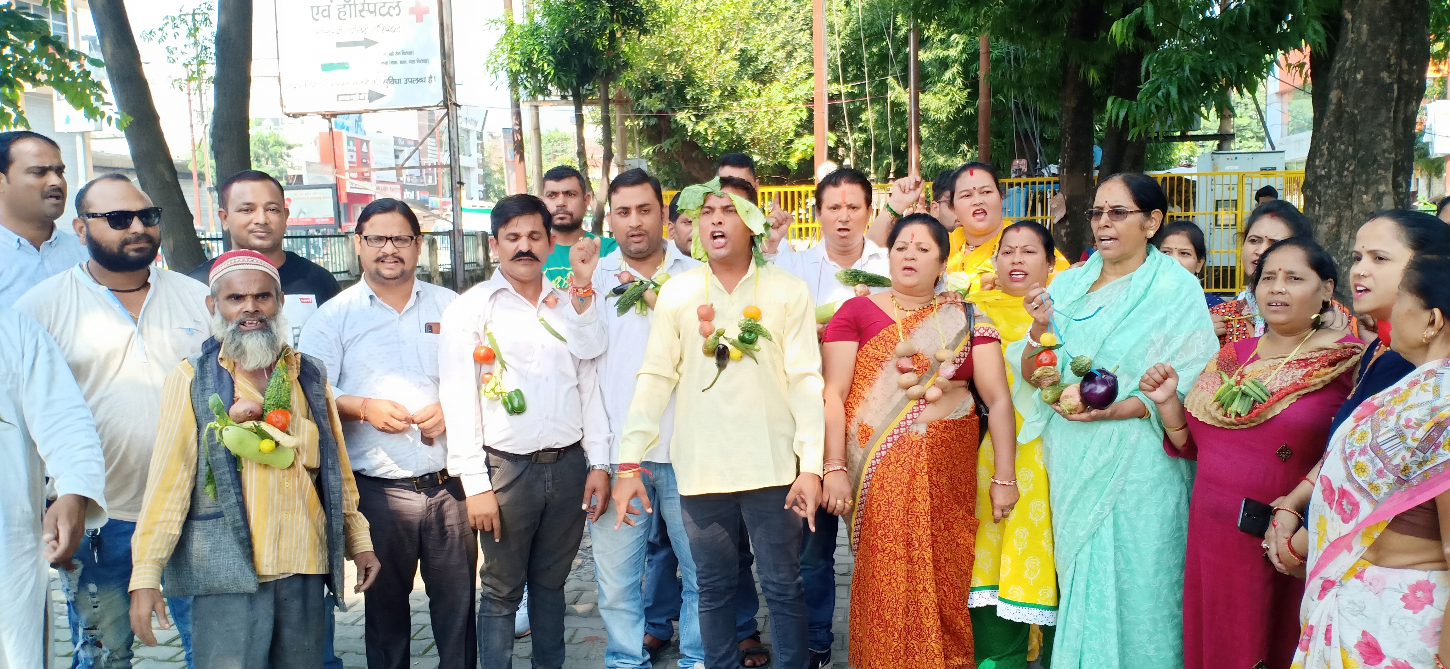 सब्जी के दामों में लगातार हो रही बढ़ोतरी को देखते हुए कांग्रेस कार्यकर्ताओं ने केंद्र सरकार के खिलाफ प्रदर्शन किया, हल्द्वानी के बुद्ध पार्क में कांग्रेस कार्यकर्ताओं ने सरकार के खिलाफ जमकर नारेबाजी की और कहा कि जिन अच्छे दिनों की बात कहकर जनता को बरगलाया जा रहा है वह अच्छे दिन यही हैं, अब सरकार से अपील है की जनता को अच्छे दिनों से वही पुराने बुरे दिनों की तरफ ले जाया जाए जिससे जनता कम से कम राहत की सांस तो ले सके, कांग्रेस कार्यकर्ताओं ने गले में सब्जी की माला डालकर और सर में गोभी के पत्ते पहनकर प्रदर्शन किया, उनके मुताबिक अच्छे दिनों का सपना दिखाने वाली मोदी सरकार जनता की आंखों से आंसू निकाल रही है, एक तरफ प्याज रुला रहा है तो दूसरी तरफ टमाटर बैगन समेत अनेक सब्जियां जनता की पहुंच से दूर होती जा रही है, उन्होंने केंद्र सरकार से अपील की कि बढ़े हुए सब्जी के दामों में कुछ कटौती की जाए जिससे किचन का बजट उनकी पहुंच में रह सके, क्योंकि सबसे ज्यादा परेशानी तो गृहणियों की है जिन्होंने बाजार से सब्जियां लानी है और एक फिक्स बजट में घर भी चलाना है।