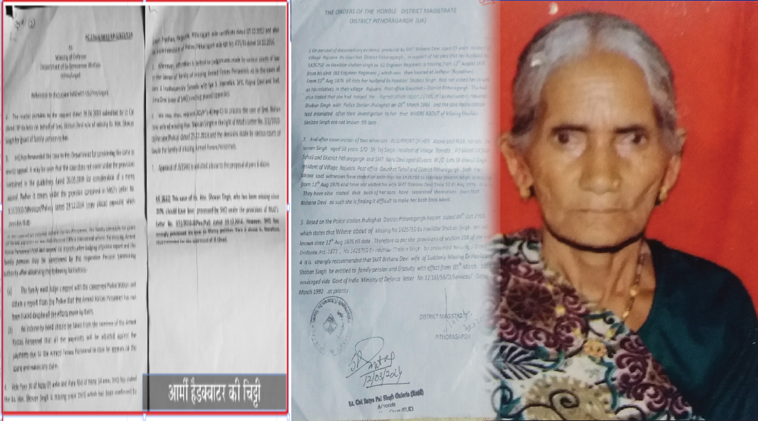 देश की सेवा करते हुए पति के गुम हो जाने का गम और उसके बााद पेंशन आदि के लिए भागदौड़ का जीवन, कुछ ऐसे ही संघर्षों से भरी पड़ी है पहाड़ की महिलाओं की दुखभरी कहानी। ऐसे ही मामलों में कई दशकों बाद महिलाओं को न्याय तो मिला लेकिन वह भी आधा-अधूरा