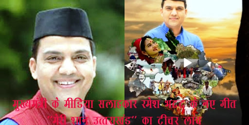 उत्तराखंड के पहाड़ों के दूरस्थ गांव में अपने-अपने क्षेत्रों में बेहतरीन कार्य कर रहे लोगों को अक्सर आपके बीच में लाने वाले मुख्यमंत्री के मीडिया के सलाहकार और वरिष्ठ पत्रकार रमेश भट्ट जल्द ही उत्तराखंड के लिए एक बेहतरीन गीत लेकर आ रहे हैं ‘मेरी आन, मेरी बान, मेरी शान’ उत्तराखंड के इस गीत के ट्रीजर को देखिए उत्तराखंड की मनमोहक तस्वीर नजर आएगी।