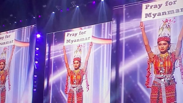 म्यांमार की प्रतियोगी का मिस यूनिवर्स के मंच से अनोखा विरोध, पोस्टर दिखा कर कहा-‘मेरे देश को बचाइए’