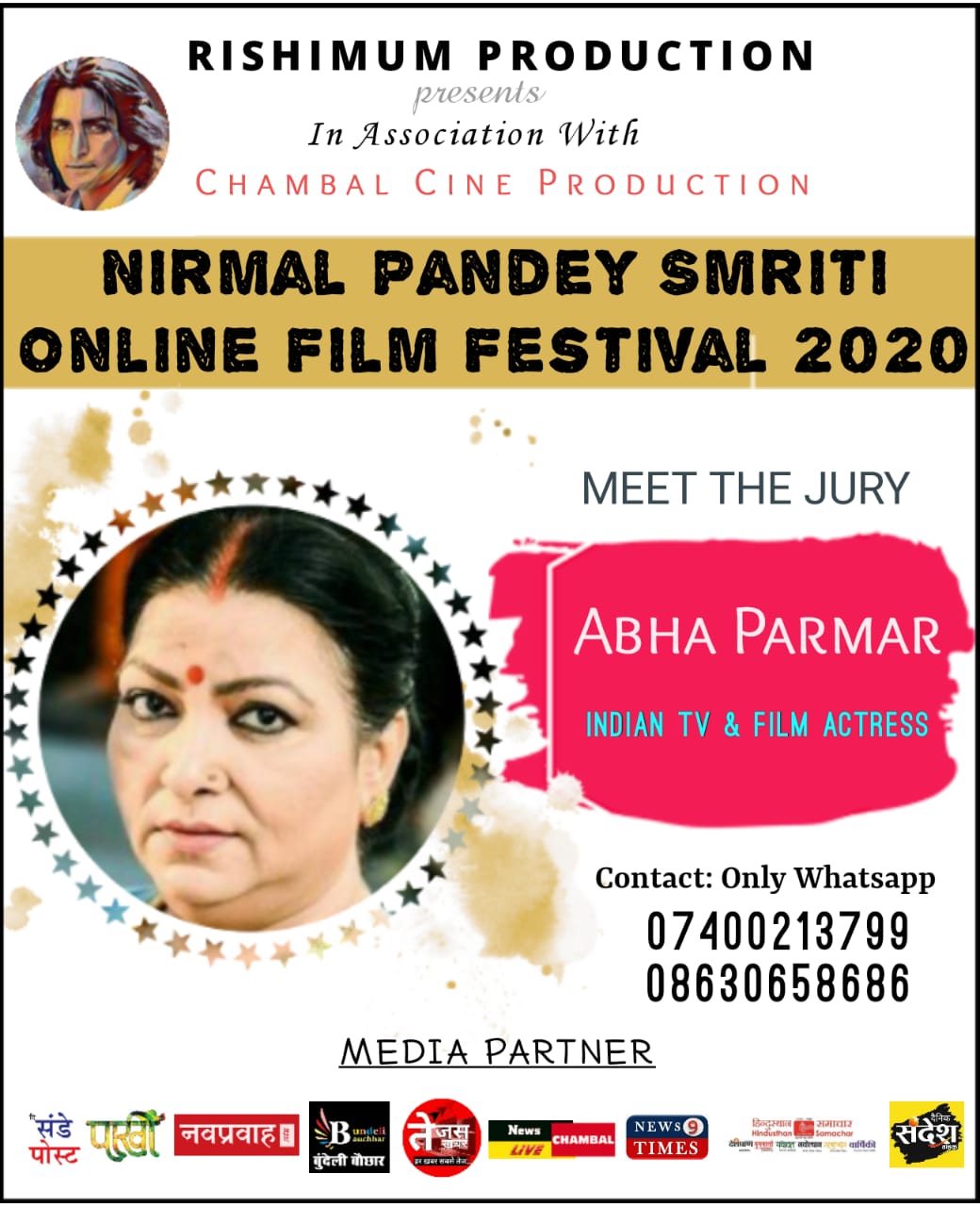 निर्मल पाण्डेय स्मृति ऑनलाइन फ़िल्म फेस्टिवल 2020 के जज पैनल की सदस्या टीवी एवं फ़िल्म अभिनेत्री आभा परमार जी से आज परिचित होते है,,,,,,,,,,,,,,,