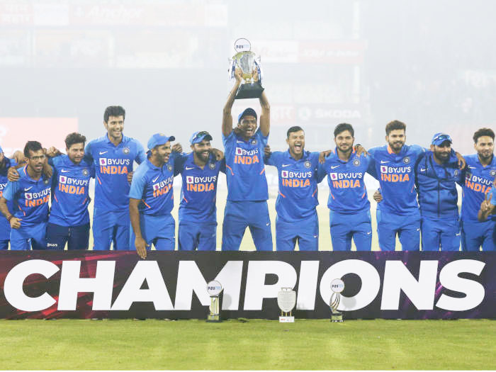 भारत की गेंदबाजी की बात करें तो डेब्यूटेंट नवदीप सैनी ने बेहतरीन प्रदर्शन करते 10 ओवर में 58 रन देकर 2 विकेट लिए।