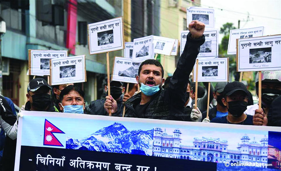 डेमोक्रेटिक यूथ एसोसिएशन के करीब 200 सदस्यों ने ध्वज मन मोकतन के नेतृत्व में काठमांडू शहर के बीचों- बीच मैतीघर मंडाला में प्रदर्शन किया और पोस्टर लहराये जिन पर लिखा था ‘हमारी कब्जाई जमीन लौटा दो’। प्रदर्शनकारियों ने यह मांग भी उठाई कि नेपाल-चीन सीमा पर लीमी लापचा से हुमला जिले में हिल्सा तक चीन द्वारा कथित भूमि अतिक्रमण का अध्ययन करने के लिए बनाई गई समिति की रिपोर्ट सरकार को सार्वजनिक करनी चाहिए।