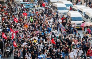शाही मानहानि कानून और उनके हिरासत में लिए गए नेताओं की दुर्दशा की ओर ध्यान आकर्षित करने के लिए सैकड़ों प्रदर्शनकारियों ने बैंकॉक की थाई राजधानी में मार्च किया। विरोध काफी हद तक शांतिपूर्ण था और कई विरोध समूहों के गठबंधन द्वारा आयोजित किया गया था। समूह प्रधान मंत्री प्रथुथ चान-ओशा और उनकी सरकार के इस्तीफे के लिए, संविधान को अधिक लोकतांत्रिक बनाने के लिए और राजशाही को और अधिक जवाबदेह बनाने के लिए बुला रहे हैं।