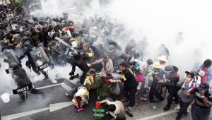 एक सम्मेलन बैंकॉक मेट्रोपॉलिटन पुलिस ब्यूरो के डिप्टी कमिश्नर पिया तावीचाई ने कहा कि जो कोई भी अन्य लोगों के साथ जुड़ता है या शामिल होता है, वह कानून तोड़ रहा है।यह अवैध विरोध प्रदर्शन है।
