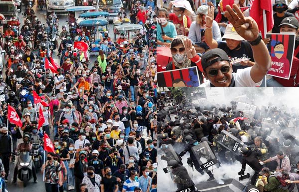 थाईलैंड में सरकार ने कोरोना वायरस के संक्रमण का बहाना बनाकर इमरजेंसी लागू की । जिससे लोगों को सार्वजनिक स्थानों पर भीड़ लगाने या किसी विरोध प्रदर्शन को आयोजित करने पर पाबंदी है। हालांकि, लोगों ने पाबंदियों की परवाह न करते हुए पूरे जोर से सरकार के खिलाफ विरोध प्रदर्शन कर रहे हैं। इतना ही नहीं, थाईलैंड की सरकार के ऊपर न्यायपालिका पर भी दबाव बनाने का आरोप लग रहा है। कहा जा रहा है कि सरकार के इशारे पर ही विरोध प्रदर्शन आयोजित करने वाली एक पार्टी की मान्यता को खत्म किया गया ।