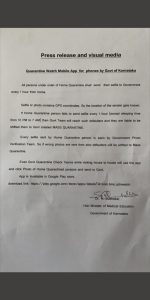 इसके लिए कर्नाटक सरकार के स्वास्थ्य विभाग की ओर से एक मोबाइल ऐप तैयार किया गया है। राज्य के स्वास्थ्य मंत्री केएस सुधाकर ने बताया, “होम क्वॉरनटाइन किए गए सभी लोगों को हर एक घंटे में अपनी सेल्फी सरकार को एक मोबाइल ऐप के जरिए भेजनी होगी। अगर ऐसा नहीं करते हैं तो उन्हें सरकार के द्वारा बनाए गए क्वॉरनटाइन सेंटर में भेज दिया जाएगा।”