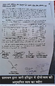 राज्य स्थापना दिवस के अवसर पर हरिद्वार के गंगा घाटों पर दीपोत्सव के कार्यक्रम में नगर निगम अधिकारियों द्वारा दीपक सामग्री क्रय किए जाने के सम्बंध में बाजार मूल्य से 4 गुणा अधिक कीमत पर निविदा आमंत्रित किए जाने का बड़ा मामला सामने आया है। जिसमें एक ही दिन में कार्यालय लिपिक से लेकर नगर आयुक्त और जिलाधिकारी द्वारा इस मामले पर दी गई वित्तीय एवं प्रशासकीय स्वीकृति की प्रक्रिया भी मामले के घेरे में है। यही नहीं दीपोत्सव कार्यक्रम आयोजित किए जाने के लिए निकाली गई निविदा में भी बड़ा खेल सामने आ रहा है, जिस पर अधिकारी पर्दा डालने में जुटे हैं।