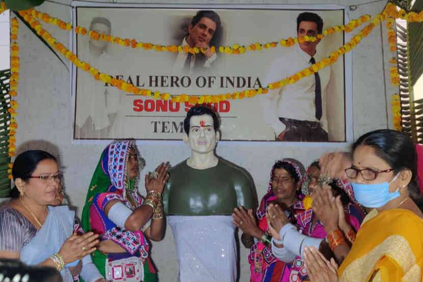 आरती के बाद ग्रामीणों ने ‘जय हो सोनू सूद’ का जाप भी किया। सोनू सूद ने तालाबंदी में ग्रामीणों की मदद की थी, और ग्रामीणों ने मदद के लिए आभार व्यक्त करने के लिए मंदिर का निर्माण किया है। इस समय गाँव के लोग पारंपरिक पोशाक पहने हुए थे।