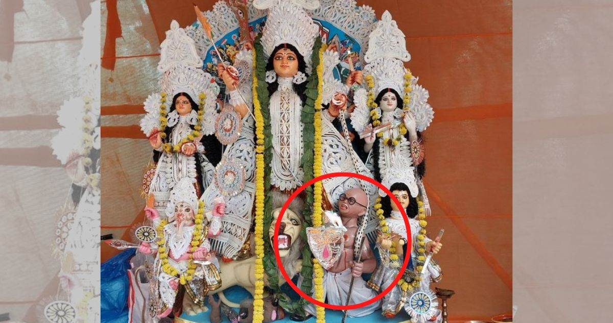 एक और जहां महात्मा गांधी की 153 वीं जयंती मना रहे थे वहीं दूसरी तरह पश्चिम बंगाल में दुर्गा पूजा पंडाल में महिषासुर की प्रतिमा की जगह महात्मा गांधी से दिखने वाले चेहरे की प्रतिमा को लेकर बवाल खड़ा हो गया है।पौराणिक कथाओं के मुताबिक माता दुर्गा महिषासुर का वध करती है। समाचार एजेंसी अनुसार विवाद से पहले आल्ट न्यूज के एक पत्रकार द्वारा यह फोटो सोशल मीडिया पर शेयर की गई थी। जिसके बाद पुलिस के निर्देशनुसार ये फोटो हटा दी गई ताकि त्योहार के दौरान तनाव पैदा न हो सके। लेकिन इसके बावजूद त्यौहार के दौरान इसे तनावपूर्ण और विवादित बनाने की कोशिश की जा रही है।