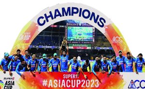 आईसीसी क्रिकेट विश्वकप से पहले इंडिया ने एशिया कप 2023 जीता। टीम इंडिया का यह एशिया कप का 8वां टाइटल है। फाइनल में श्रीलंका की टीम पहले खेलते हुए सिर्फ 50 रन ही बना सकी। इस मुकाबले में तेज गेंदबाज मोहम्मद सिराज ने 21 रन देकर 6 विकेट झटके।