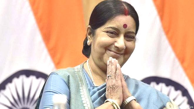 सुषमा को मोदी सरकार के पहले कार्यकाल की शुरुआत में ही विदेश मंत्री बनाया गया था। वह इंदिरा गाँधी के बाद विदेश मंत्रालय की ज़िम्मेदारी संभालने वाली दूसरी महिला रही हैं। प्रधानमंत्री रहते हुए इंदिरा गाँधी ने कुछ समय के लिए विदेश मंत्रालय का पदभार संभाला था।विदेश मंत्री के अपने पूरे कार्यकाल के दौरान लोगों की मदद करने के लिए प्रसिद्ध रहीं सुषमा ने सोशल मीडिया के माध्यम से विदेश मंत्रालय तक आम लोगों की पहुँच को आसान बनाया।