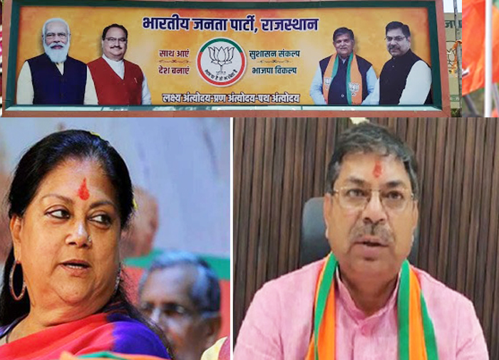 राजस्थान विधानसभा चुनाव होने में भले ही अभी दो साल का समय है, लेकिन भाजपा में मुख्यमंत्री के चेहरे को लेकर अभी से दरार पड़ने लगी है। राज्य में जहां एक ओर सत्ताधारी कांग्रेस पार्टी की रार खत्म नहीं हुई कि विपक्षी पार्टी भाजपा की मुसीबत भी बढ़ने लगी है। दरअसल , भाजपा प्रदेश मुख्यालय के बाहर लगे होर्डिंग में पूर्व मुख्यमंत्री वसुंधरा राजे की फोटो नहीं लगाने के बाद से पार्टी के भीतर जुबानी जंग फिर से शुरू हो गई है।