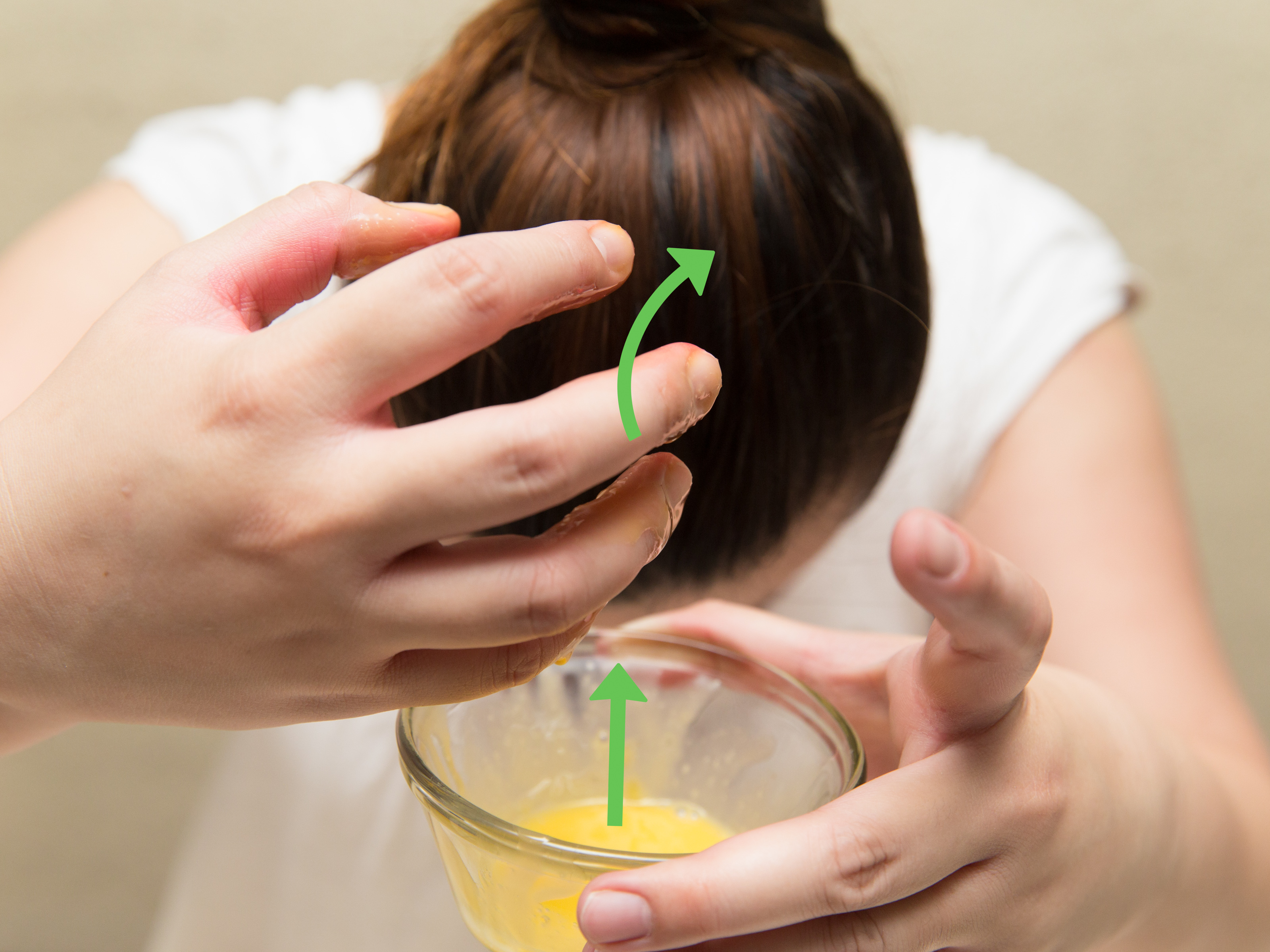 अंडा में प्रोटीन होता है। इसके अलावा इसमें सल्फर और बायोटीन होता है जो कि स्वस्थ्य और मजबूत बालों के लिए बहुत ही आवश्यक है। अंडे को खाने के अलावा अंडे का पेस्ट बनाकर बालों में लगाने से बाल मजबूत और घने होते हैं। इसके लिए आप 2 अंडे लें। उन्हें अच्छे से फेंटकर गीले बालों में लगाएं। आधा घंटा रखने के बाद गुनगुने पानी और शैम्पू से धो लें। इसके नियमित इस्तेमाल से बालों की चमक लौट आएगी और बाल मजबूत होंगे। अगर आपको अंडे की महक से परेशानी है तो आप मेहंदी में अंडे का सफेद भाग फेंट कर दो 2 घंटे तक लगाए रखें। फिर शैपू से धो लें।