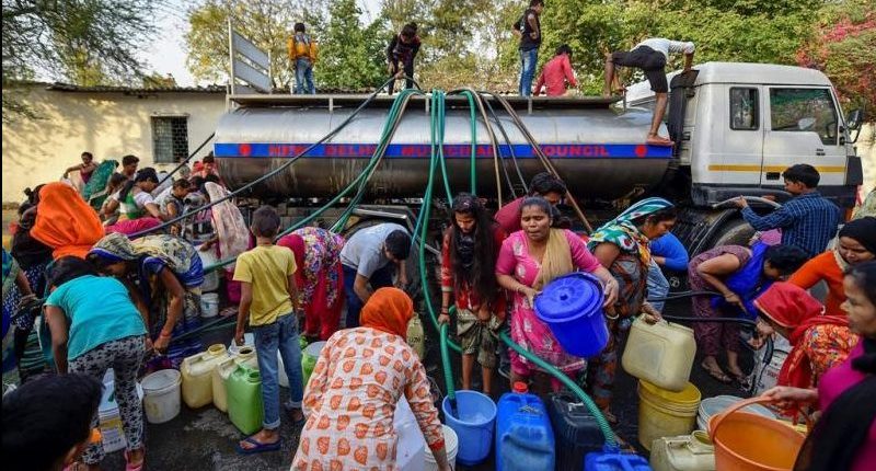दिल्ली की बात करें तो चारों ओर से भूमि से घिरे होने के कारण दिल्ली के पास कोई जल पूर्ति क्षेत्र नहीं है। दिल्ली जल प्राप्ति के लिए यमुना नदी सबसे प्रमुख है। यमुना नदी से आने वाला पानी दिल्ली के 3 इलाकों सीएलसी चैनल, डीएसबी चैनल और वजीराबाद तालाब। इसके बाद दिल्ली को ‘वजीराबाद तालाब’ द्वार 234 एमजीडी , ‘अपर गंगा करनाल ’ से 254 मिलियन गैलन प्रति दिन (एमजीडी), ‘दिल्ली सब ब्रांच और कैरियर लाइंड करनाल मुनक नहर’ से 373 एमजीडी, ‘ट्यूबवेल और रेनी वेल’ द्वारा 137 एमजीडी की आपूर्ति को जाती है। इन सबको मिलाकर दिल्ली को मिलने वाले एमजीडी की संख्या 900 के करीब पहुंचती है। पाइपलाइन नहीं बिछाई गई है उन स्थानों पर टैंकर द्वारा पानी पहुंचाया जाता है। दिल्ली में हर दिन लगभग 10हजार141 जगहें ऐसी हैं जहां टैंकरों द्वारा पानी पहुंचाया जाता है।