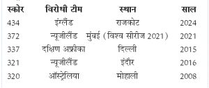 राजकोट में खेले गए टेस्ट मुकाबले में भारत ने सबसे बड़ी जीत दर्ज की है। इससे पहले न्यूजीलैंड के खिलाफ 2021 में खेले गए मैच में भारत ने 372 रन से जीत दर्ज की थी, वहीं 2015 में दक्षिण अफ्रीका के खिलाफ भारत ने 337 रन से मुकाबला अपने नाम किया था। 2016 में टीम इंडिया ने न्यूजीलैंड को 321 रन से मात दी थी। इसके अलावा 2008 में ऑस्ट्रेलिया के खिलाफ भारत ने मोहाली में 320 रन से जीत दर्ज की थी।