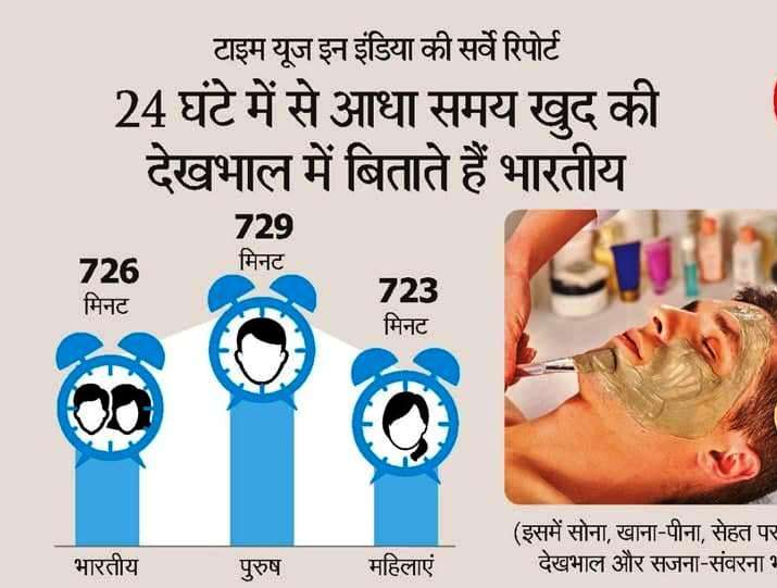 महिलाएं अपने पूरे दिन में घर के सदस्यों की देखभाल में 134 मिनट और पुरूष 76 मिनट खर्च करते हैं। पूरे दिन में इन खर्च समय को जोड़े तो स्पष्ट हो जाता है कि परिवार की देखभाल से लेकर घरेलू कार्यों की जिम्मेदारी कौन निभाता है। महिलाएं औसतन समय का 16.9 फीसदी और पुरूष 1.7 फीसदी बिना पैसे के घरेलू काम व महिलाएं 2.6 फीसदी घर के सदस्यों की देखभाल तो वहीं पुरूष सिर्फ 0.8 फीसद समय खर्च करते है। इस रिपोर्ट को टॉइम यूज इन इंडिया सर्वे ने हाल ही में जारी किया है।