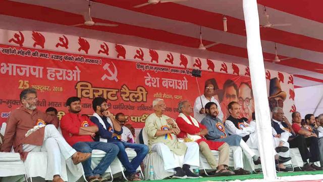 पटना के गांधी मैदान में भारतीय कम्युनिस्ट पार्टी की तरफ से भाजपा भगाओ, देश बचाओ रैली का आयोजन किया गया था। इस रैली में महागठबंधन के नेता भी शामिल थे। शरद यादव गुलाम नवी आजाद, जीतनराम मांझी, सरीखे दिग्गजों के बीच कन्हैया कुमार स्टार बने रहे। उनके साथ गुजरात के दलित नेता जिग्नेश भी थे। कन्हैया कुमार बिहार के लेनिनगार्ड कहे जाने वाले बेगूसराय से